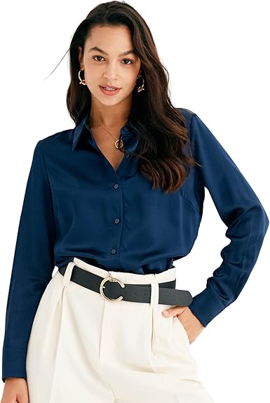 Women's Silk Blouse 100% Mulberry Silk Long Sleeves Shirt