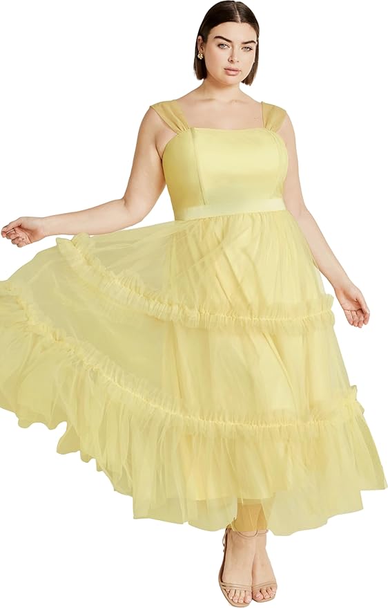 Women's Flutter Sleeve V-Neck Ruffle Trim Chiffon Hi Lo Dress