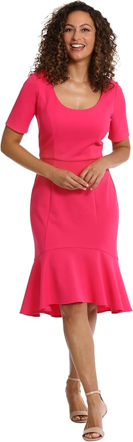 Versatile Scoop Neck High-Low Flounce Hem Womens Dresses