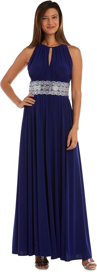 Womens Drape Back Long Evening Dress