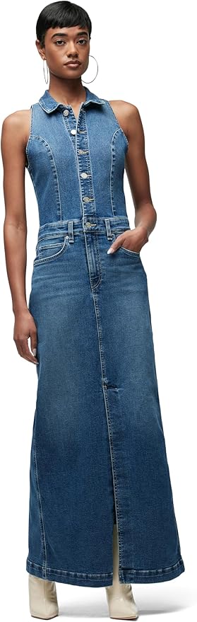Women's Sleeveless Collared Halter Neck Utility Dress with Pockets