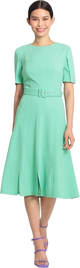 Women's Short Sleeve Fit and Flare Scuba Crepe Dress