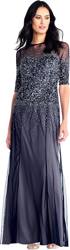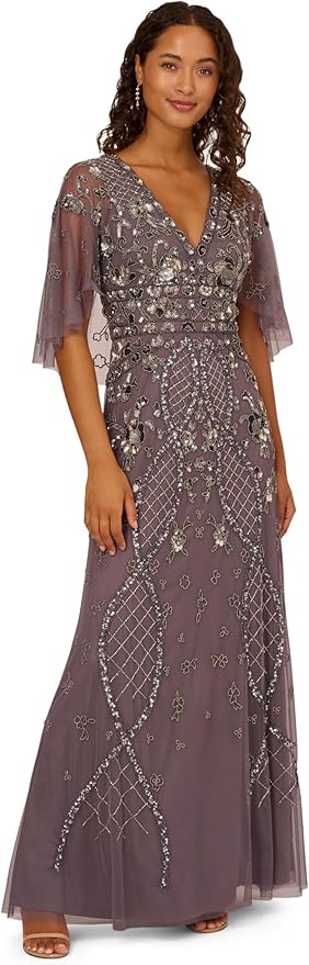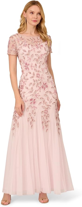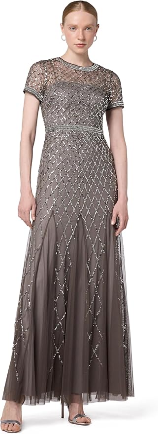 Women's Short-Sleeve Grid Beaded Gown