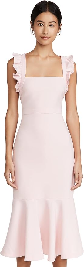 Women's Halter Neck Ruffle Off The Shoulder Scuba Crepe Midi Dress
