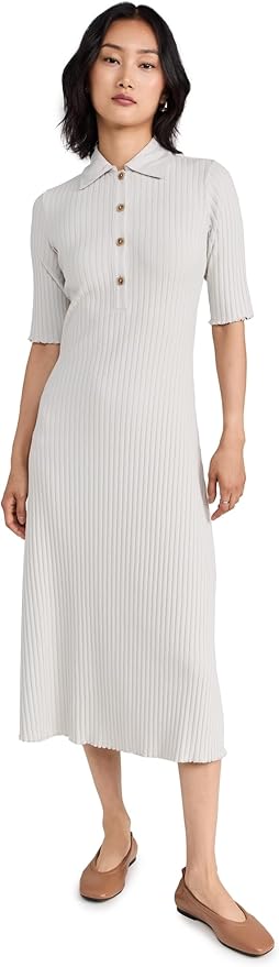 Women's Rib Elbow Sleeve Polo Midi Dress