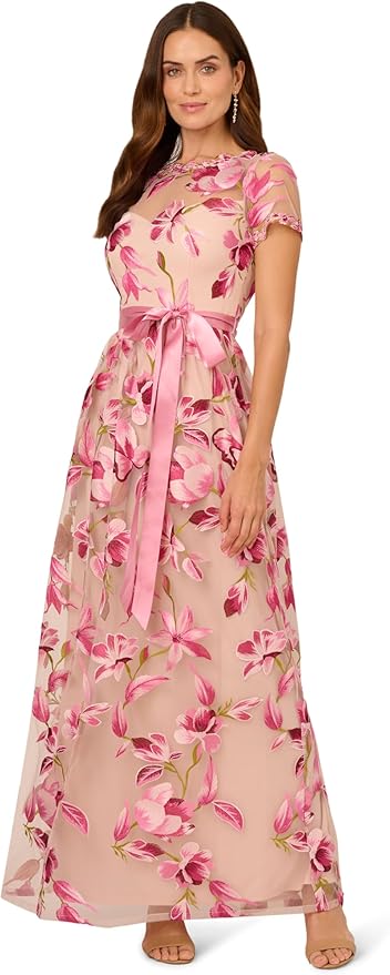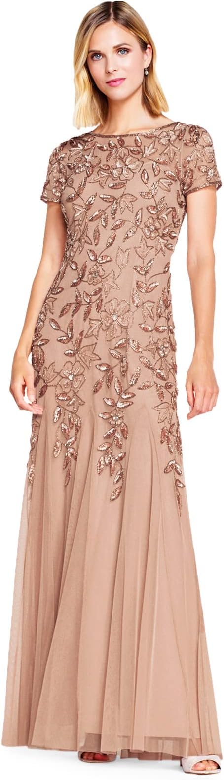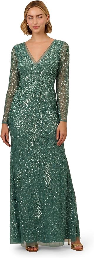 Women's Long Velvet Illusion Sleeve Mock Neck Ruched Gown