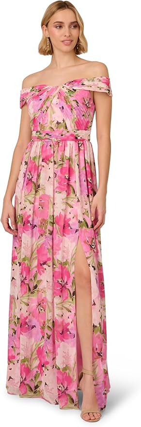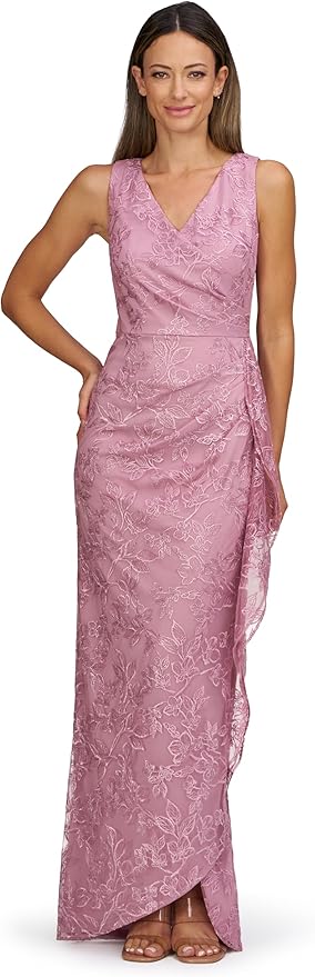 Women's One-Shoulder Gown with Cascading Ruffle Detail and Ruched Waist