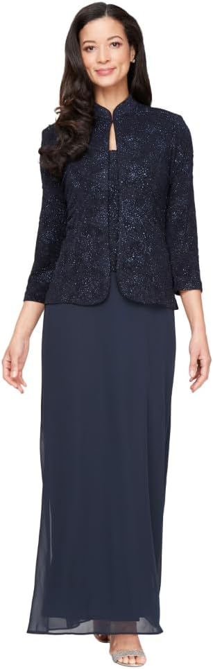Women's Long Dress with Mandarin Neckline Jacket (Regular Petite Plus)