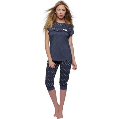 2Pcs Elegant Cotton Pyjamas Leisure Suit (Made in The EU) Made of Beautiful top and Great Trousers in Delicate Design