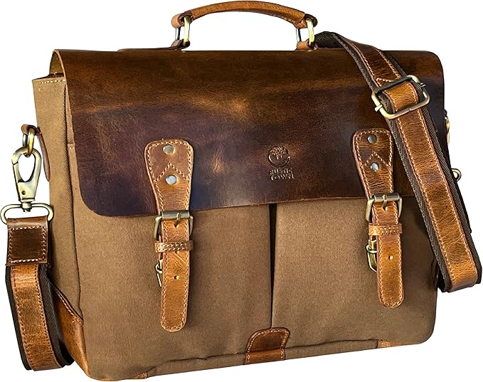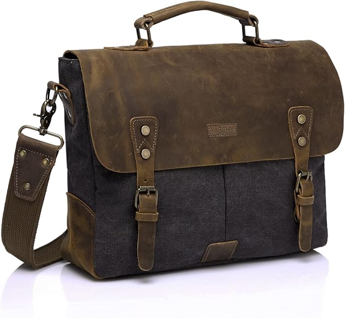 Messenger bag for men, Vintage Leather Canvas Satchel 14in Laptop Crossbody Shoulder Bag
