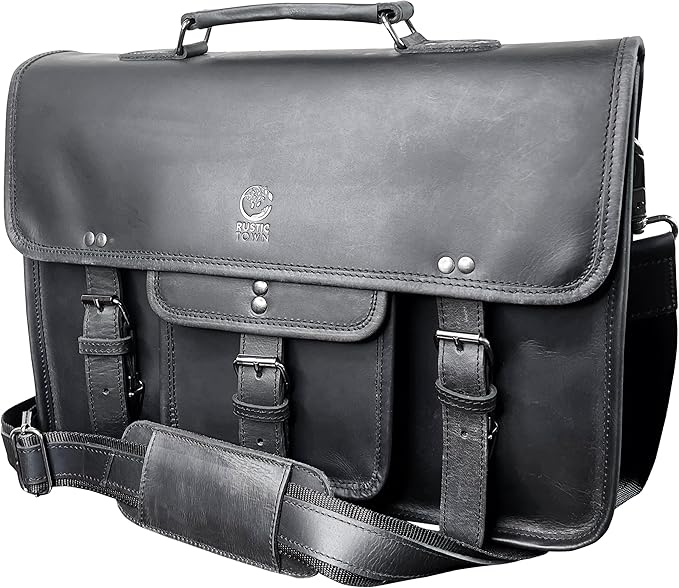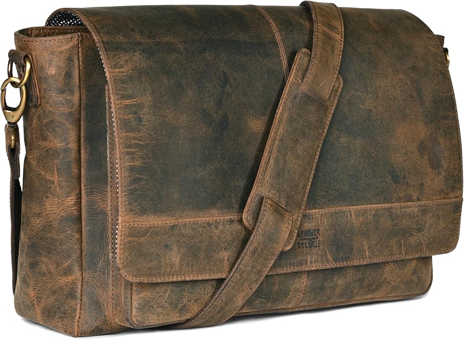 Vintage Leather Messenger Bag–15.5" Handmade Satchel for Men & Women– Shoulder Bag Office, Travel & Daily Use