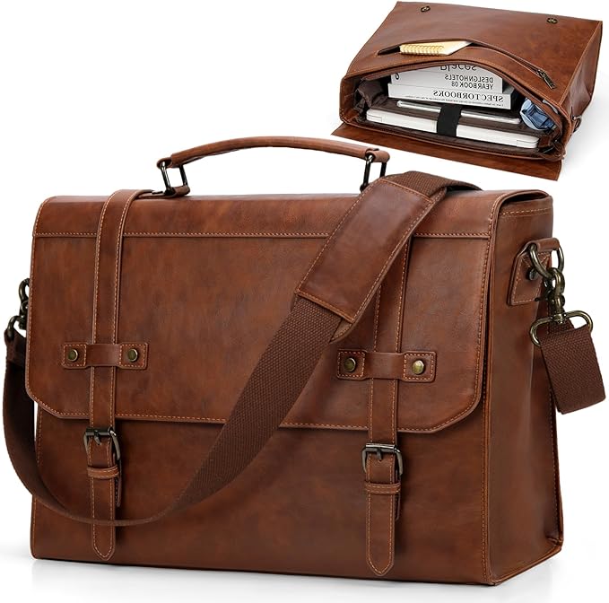 Leather Briefcase for Men Expandable Large 17 Inch Laptop Crossbody Shoulder Bag Business Travel Duffel Attache Case