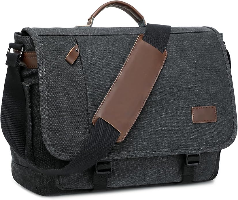 Messenger Bag for Men, Vintage Water Resistant Canvas Satchel 14 15.6 17inch Laptop Briefcase
