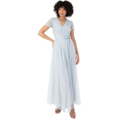 Women's Maxi Dress Ladies Bridesmaid V-Neck Ball Gown Short Sleeves Long Elegant Empire Waist Wedding