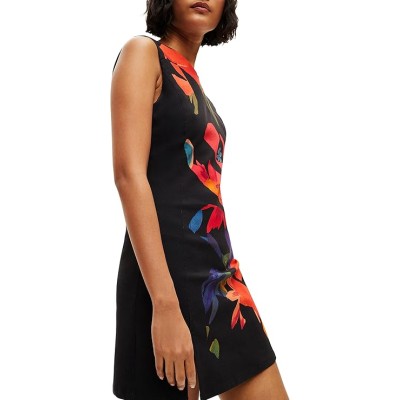Floral Embroidered Midi Women, High Neck Summer Cocktail & Wedding Guest Dress