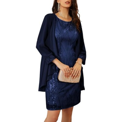 Women's Sequin Dress Wedding Guest Dresses Mother of The Bride Dresses Formal Dress Two Piece Dress Knee Length