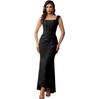 Elegant Lace Bodycon Fishtail Dress Wedding Guest Dress Fishbone Dress Shoulder Strap Ruched Midi Party Dress for Women
