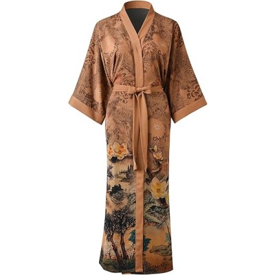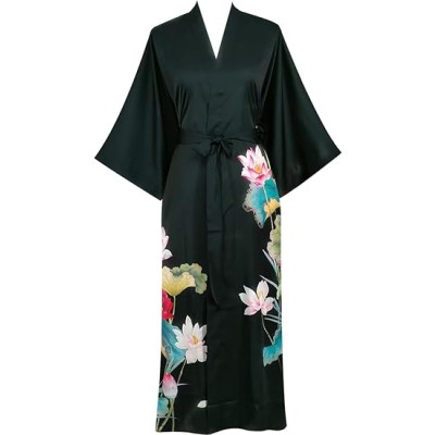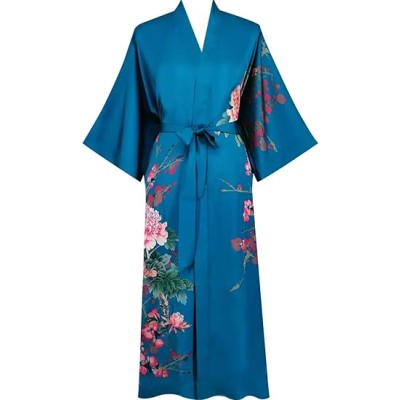 Women's Kimono Long Robe - Classic Floral Bathrobe Nightgown