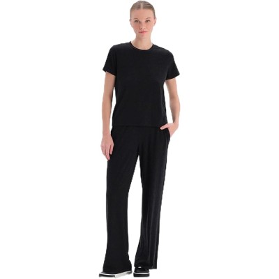 Women's Black Knitted Regular Waist Supreme Long Leg Trousers Pyjama Bottom