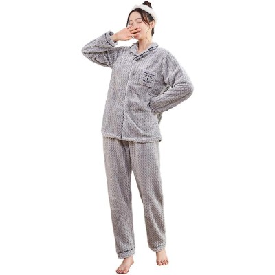 Women's Plush Fleece Pajamas Set,Long Sleeve 2-Piece Button-Down Pajamas Thick Sleepwear Lounge Sets Gray XXL
