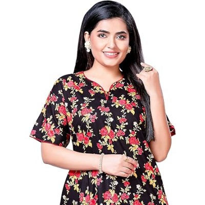 Nightgowns for Women, Soft Cotton Short Sleeve Long Women Nightgowns, Lightweight Women Sleepwear Nightdress (Black)