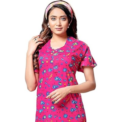 Nightgowns for Women, Soft Cotton Short Sleeve Long Women Nightgowns, Lightweight Women Sleepwear Nightdress (Pink)